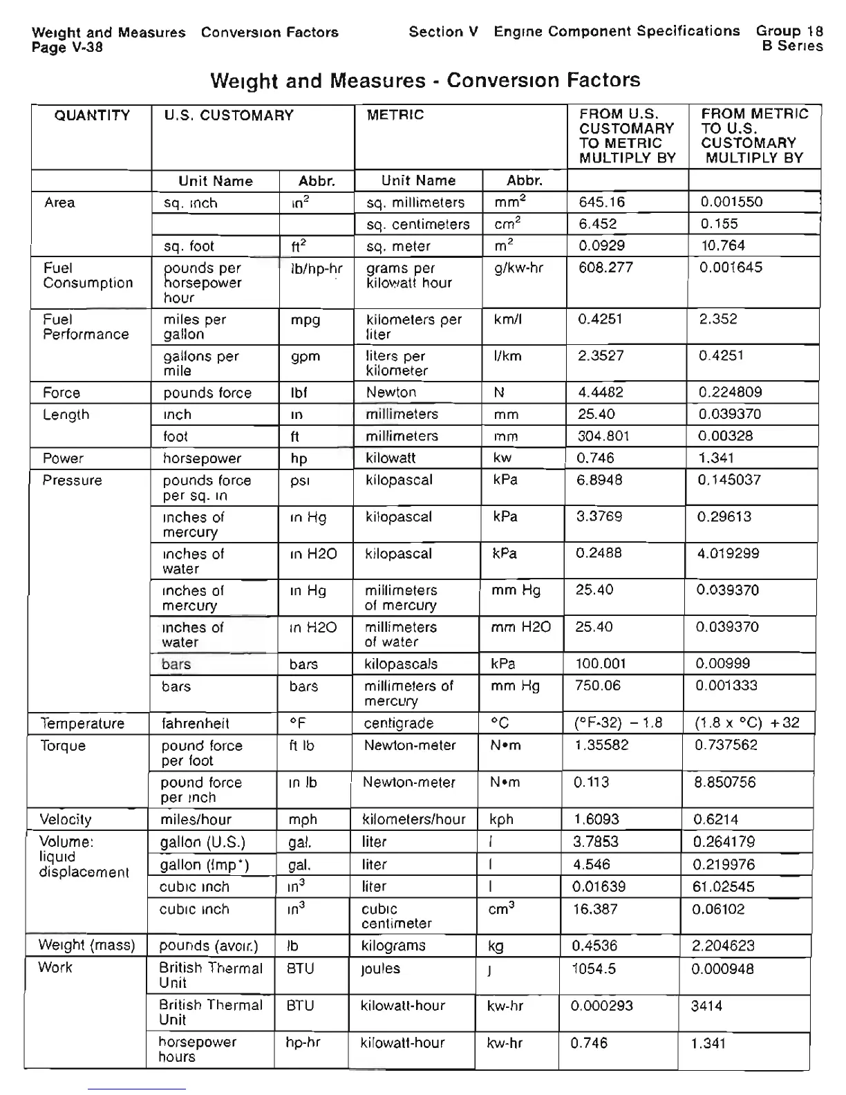 CUMMINS 5.9 - Weight and Measures-Conversion Factors