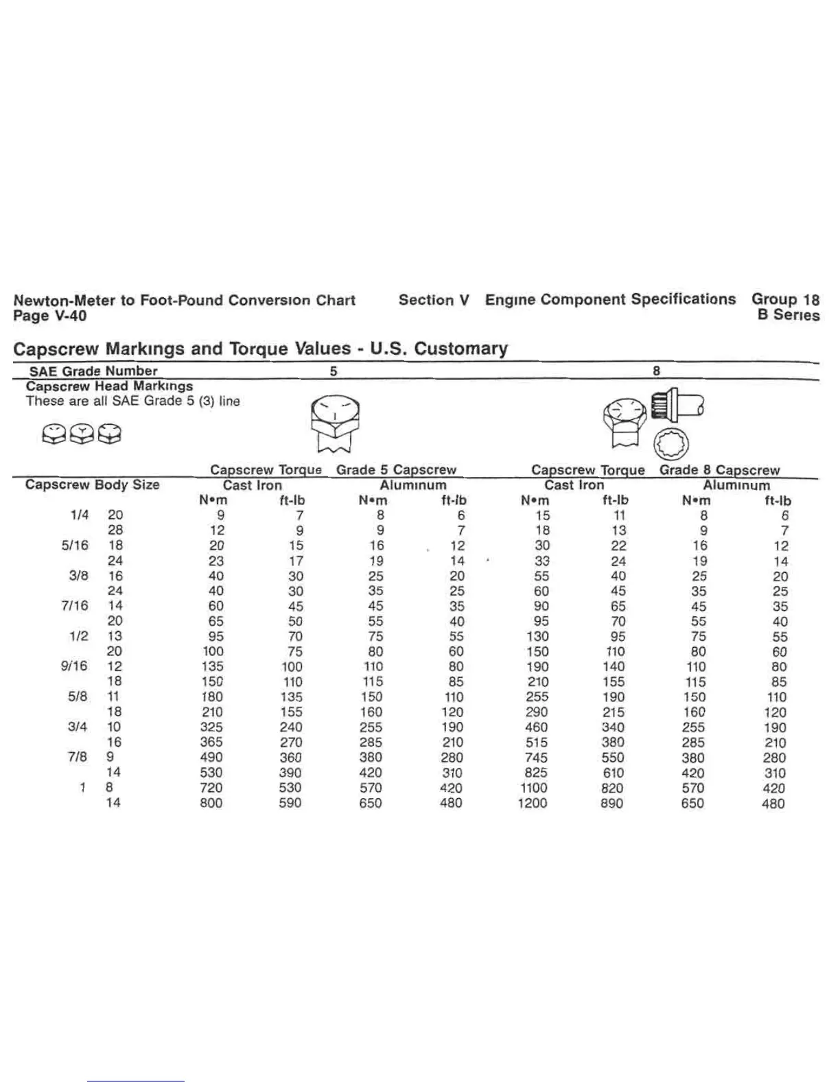 CUMMINS 5.9 - Capscrew Markings and Torque Values-U.S. Customary