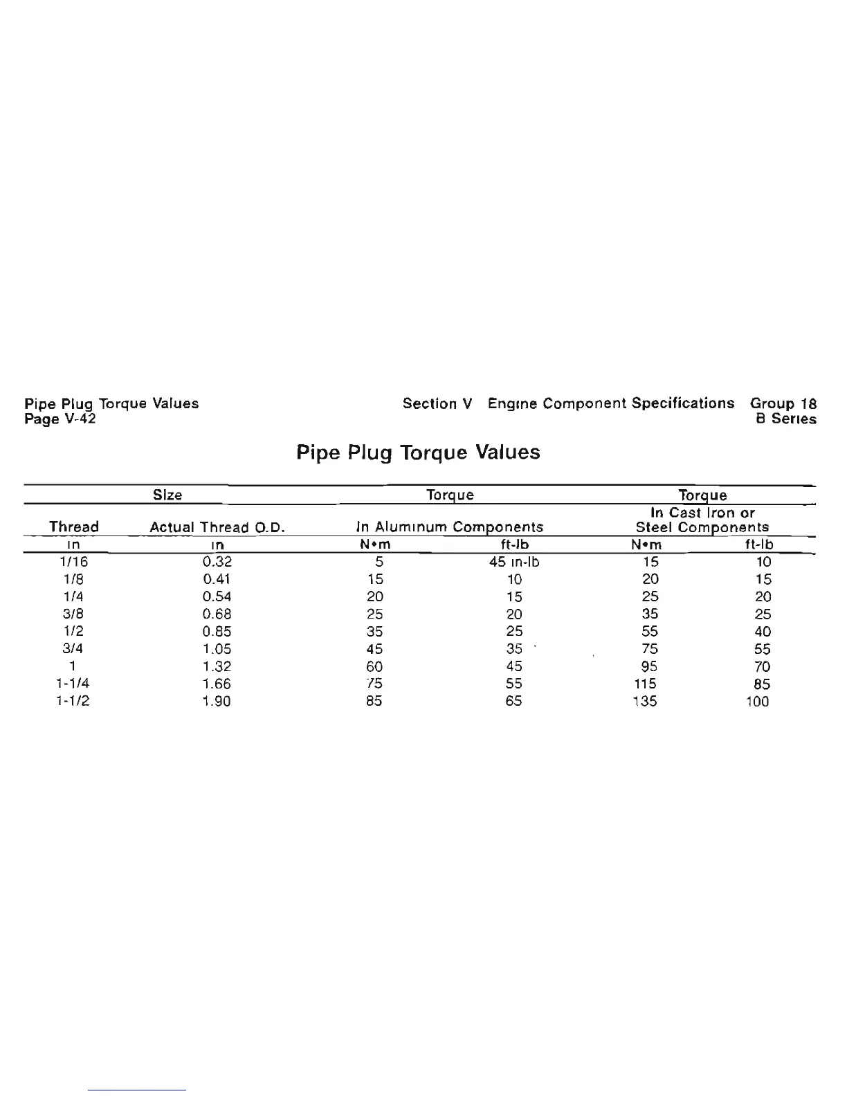 CUMMINS 5.9 - Pipe Plug Torque Values