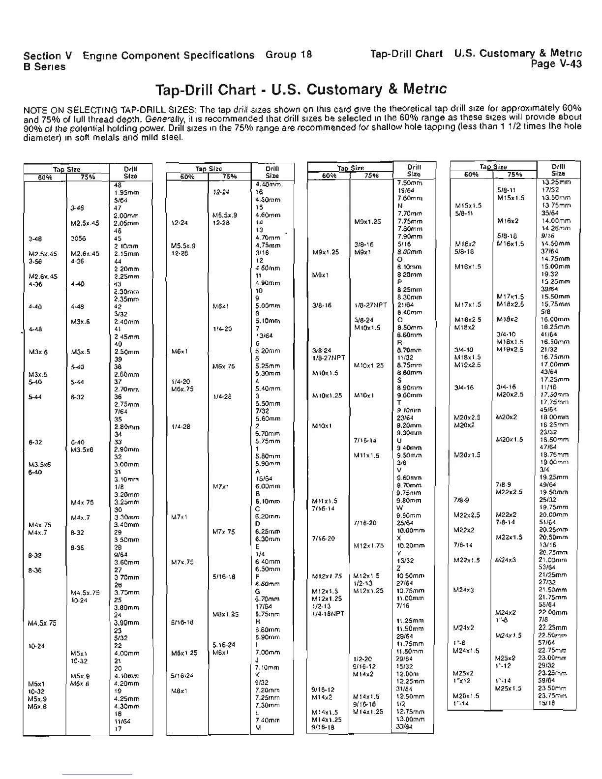 CUMMINS 5.9 - Tap-Drill Chart-U.S. Customary & Metric