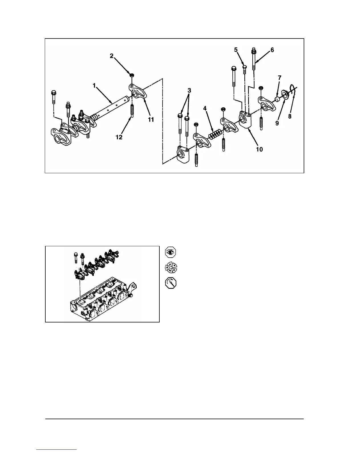 Install the rocker arm assembly and eight capscrews.