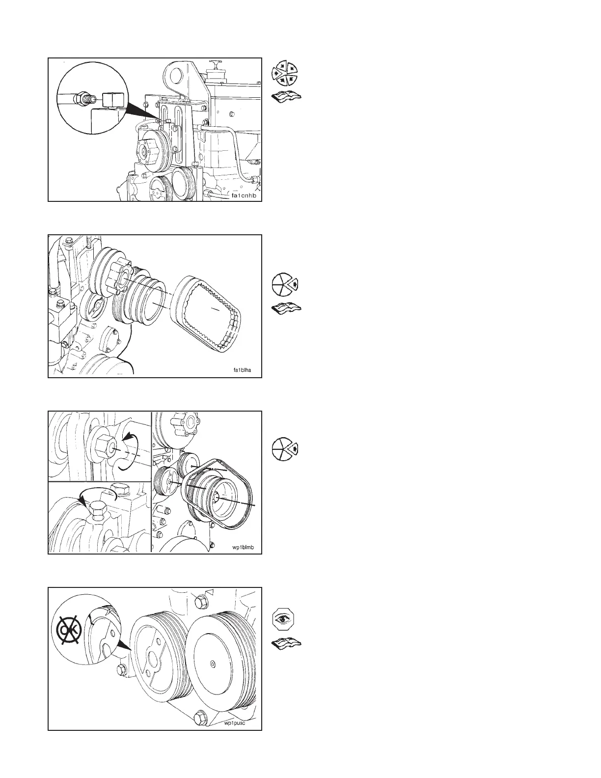 Install the fan hub signal line. Tighten the fan belts. Refer