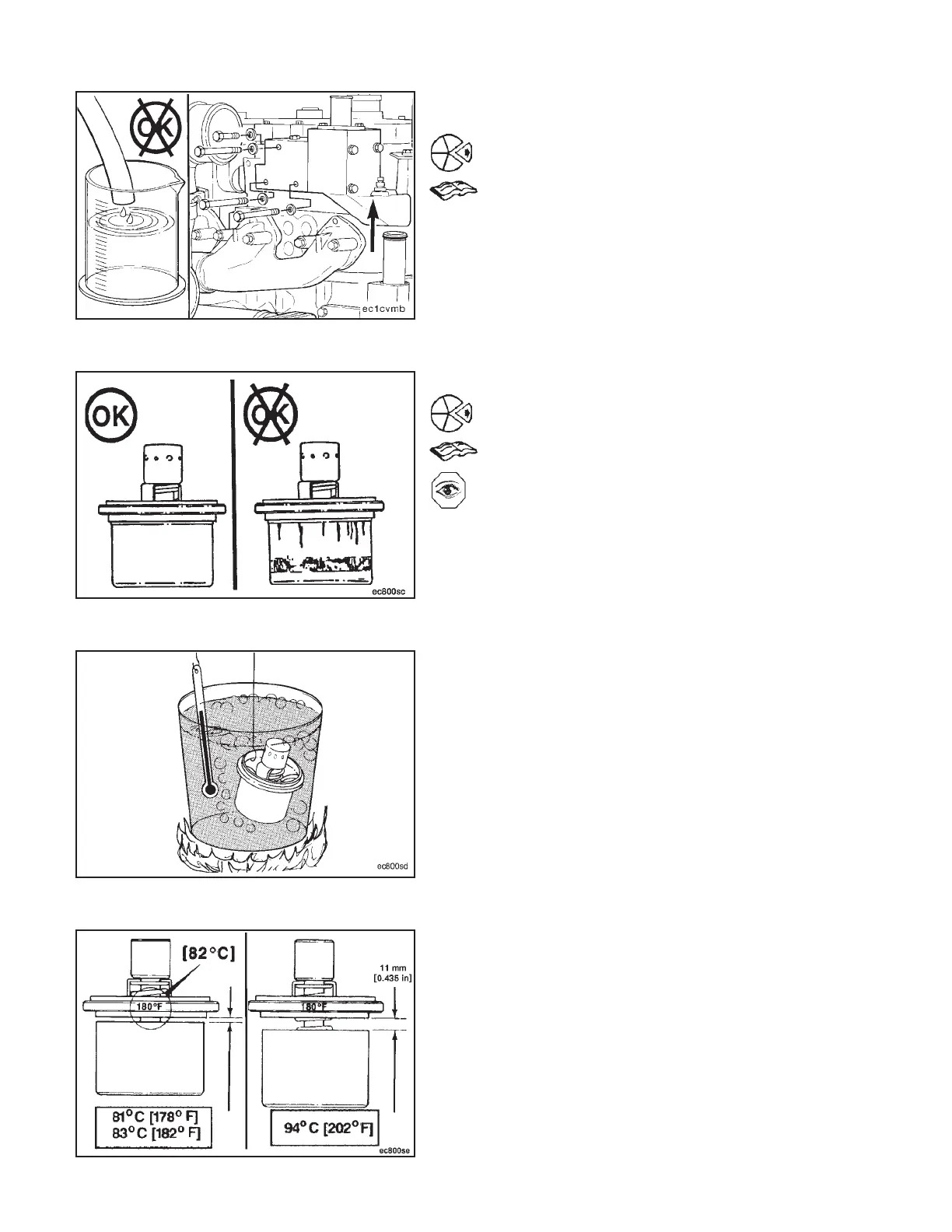 Suspend the thermostat and a 100°C [212°F] thermom-