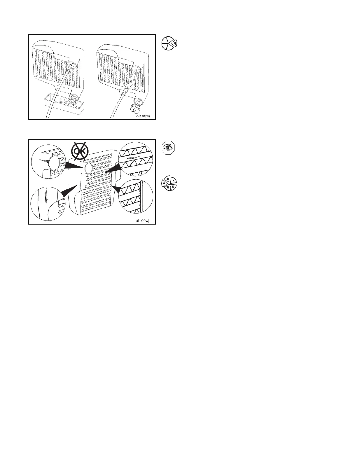 Inspect the tubes, fins and welds for tears, breaks or other