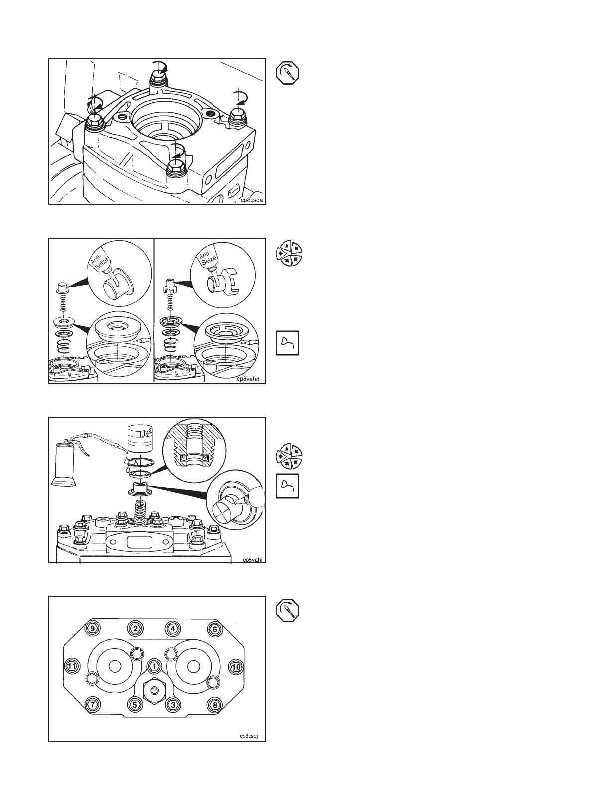 Tighten the cylinder head capscrews of the single cylin-