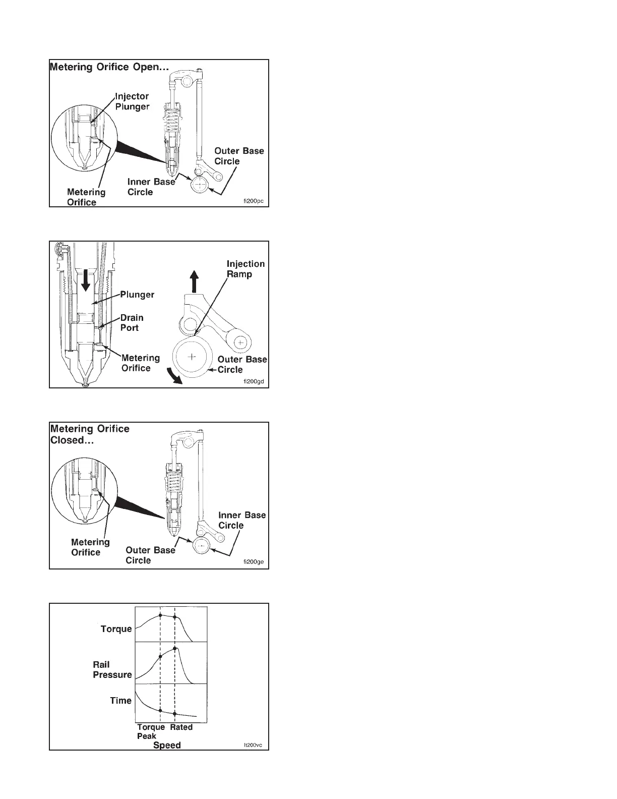 The metering orifice is covered while the cam follower