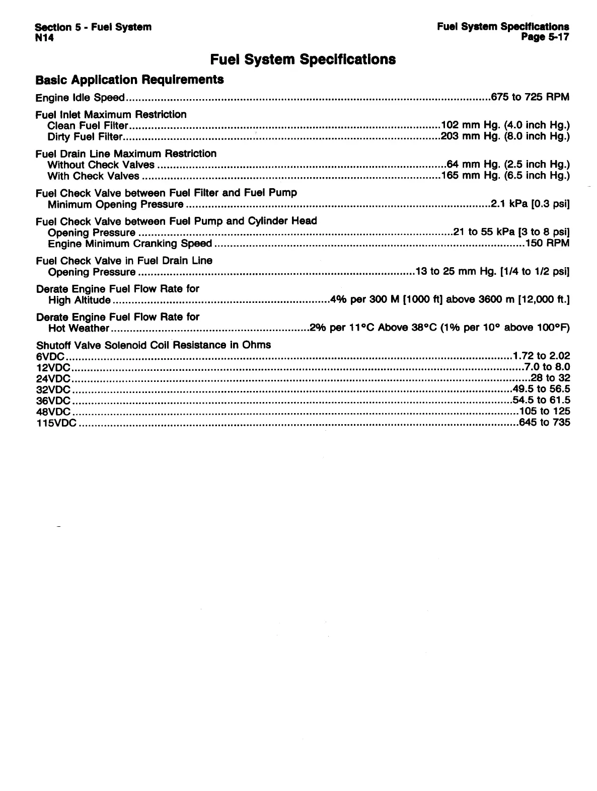 CUMMINS N14 - Fuel System Specifications