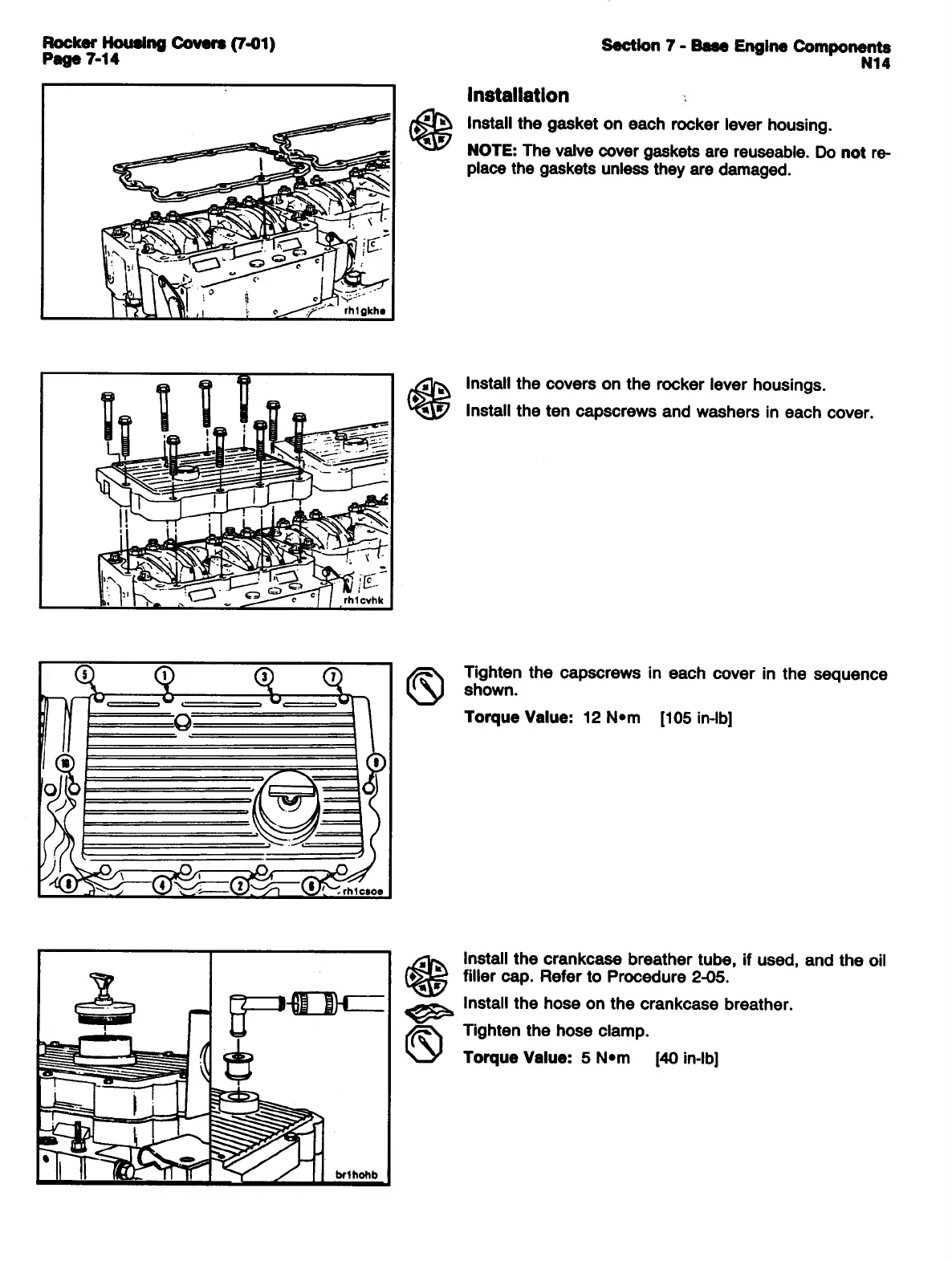 CUMMINS N14 - Overhead Adjustment; Rocker Lever Housings Replacement; Rocker Levers Replace; Seal, Accessory Drive Replacement