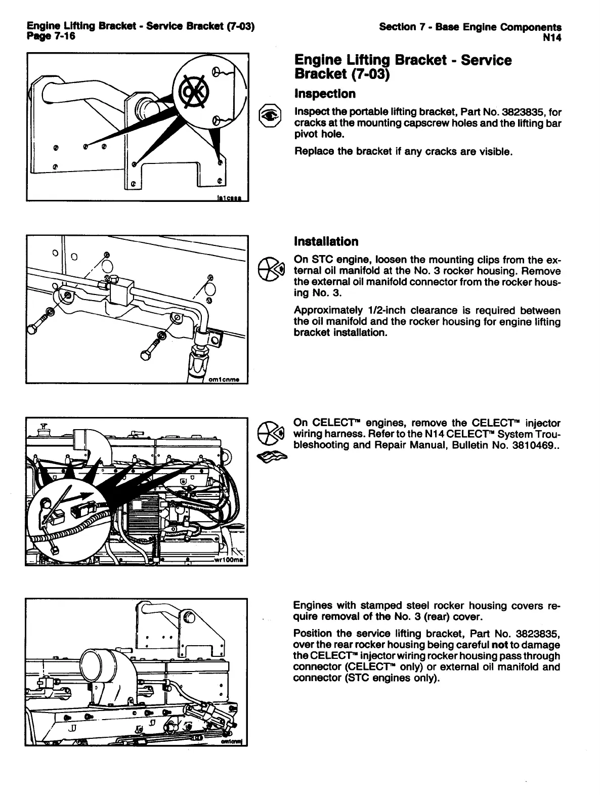 CUMMINS N14 - ENGINE LIFTING BRACKET - SERVICE BRACKET; INSPECTION; INSTALLATION