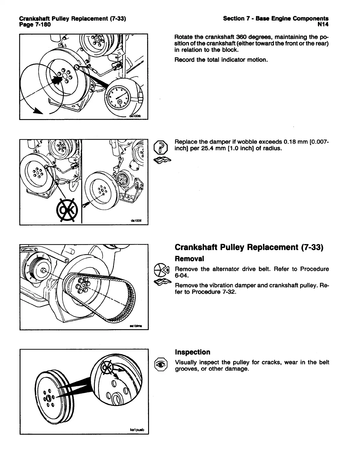 CUMMINS N14 - CRANKSHAFT PULLEY REPLACEMENT; REMOVAL; INSPECTION