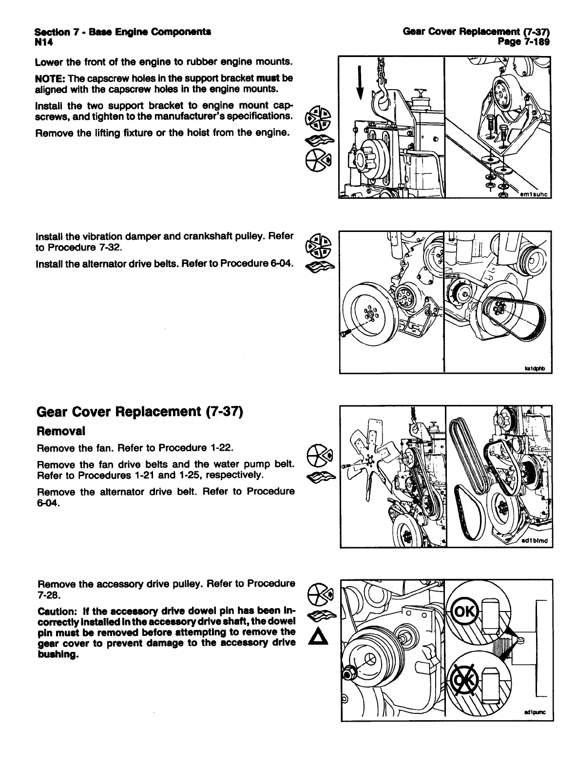 CUMMINS N14 - GEAR COVER REPLACEMENT; REMOVAL
