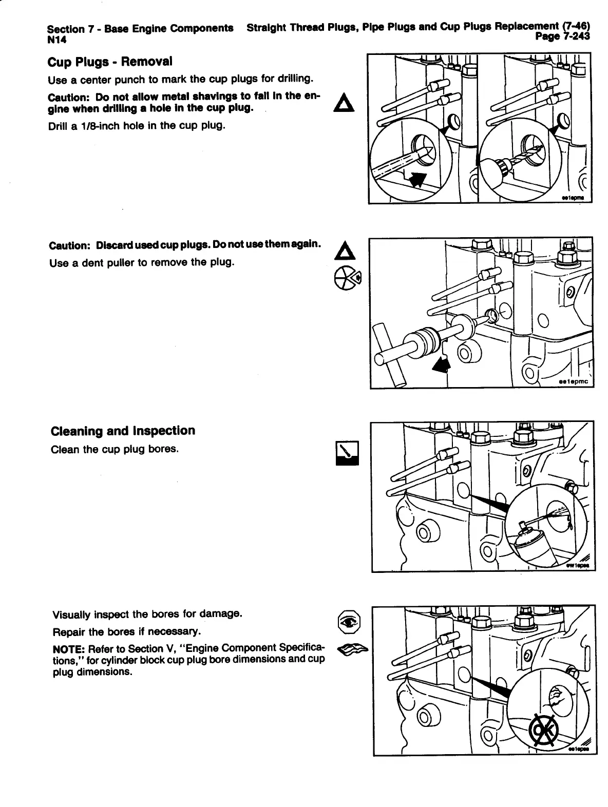 CUMMINS N14 - CUP PLUGS - REMOVAL; CLEANING AND INSPECTION