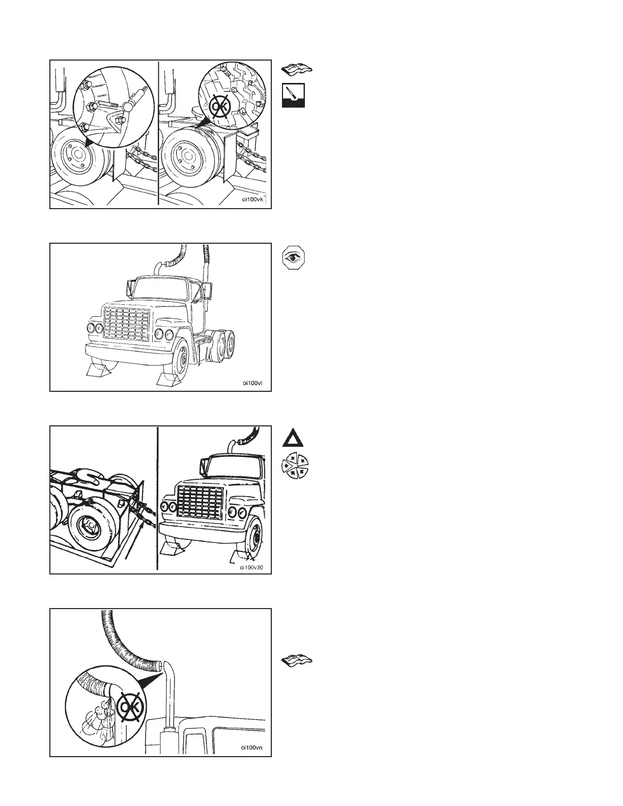 Caution: The ‘‘tie down’’ chains must have slack to