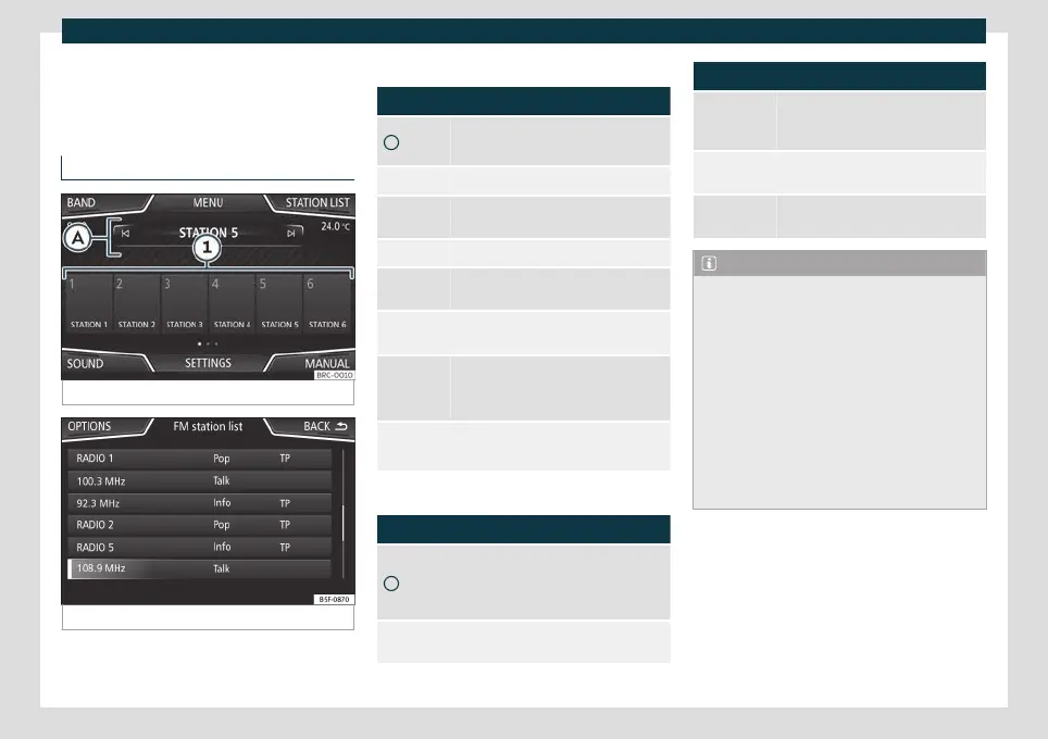 Radio mode: station list (FM).