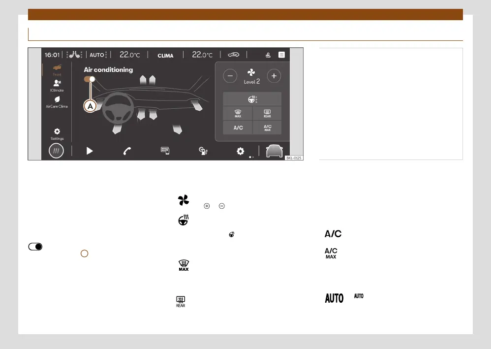 Submenu for the air conditioning in the front