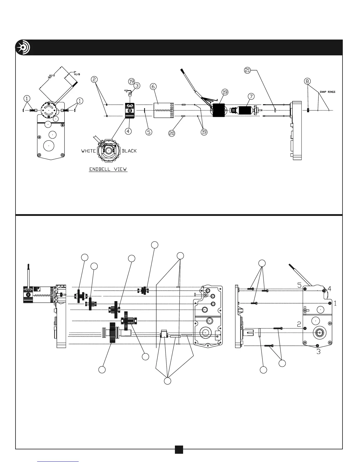 EXPLODED VIEW – MODEL 1450 CABLE PULLER GEAR MOTOR