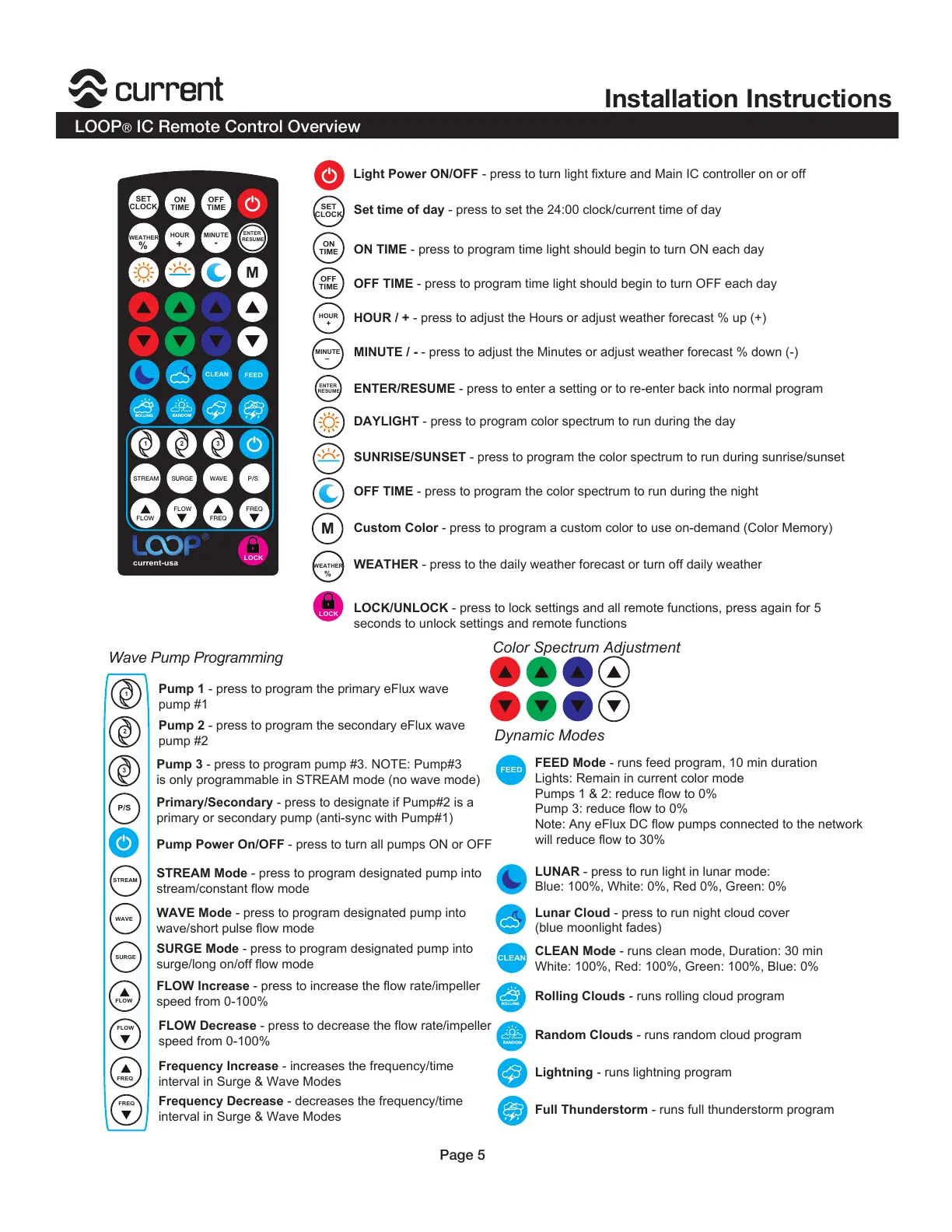 SUNRISE/SUNSET - press to program the color spectrum to run during sunrise/sunset