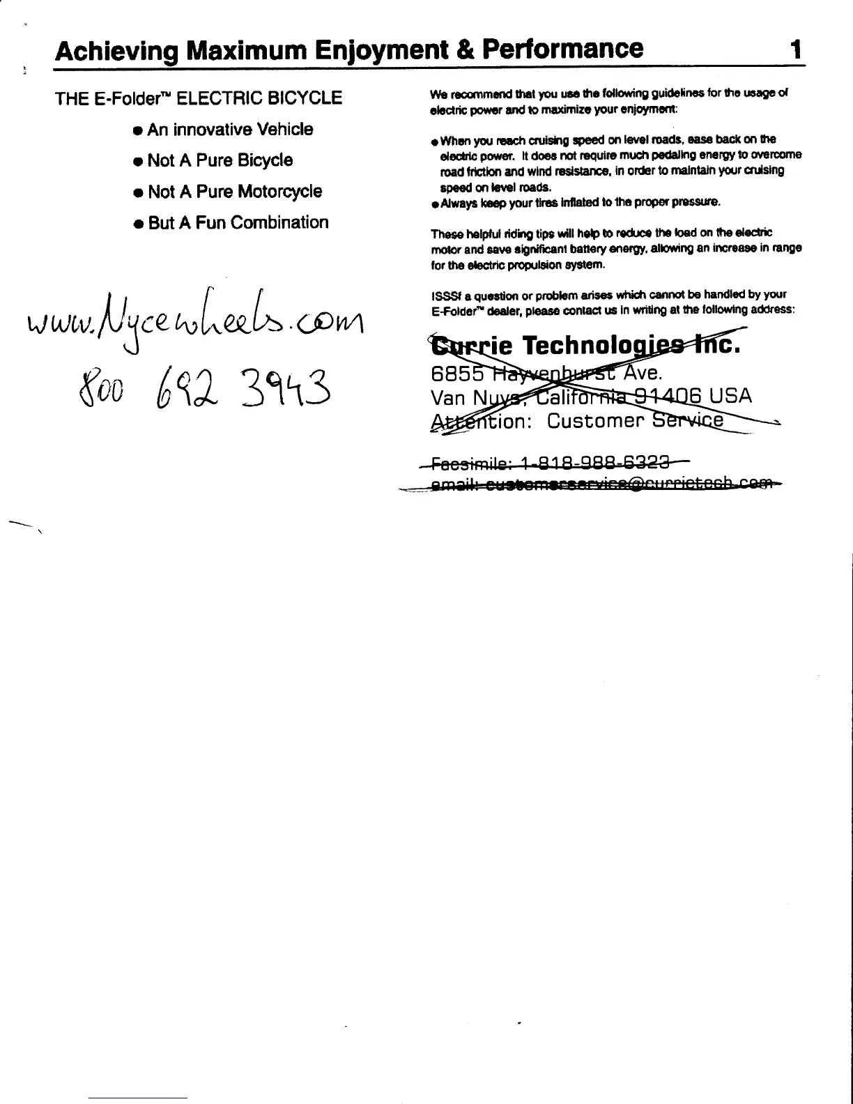 Currie tech E-FolderCTI-B-30 - Maximizing Enjoyment and Performance; Riding Guidelines; Customer Support Contact