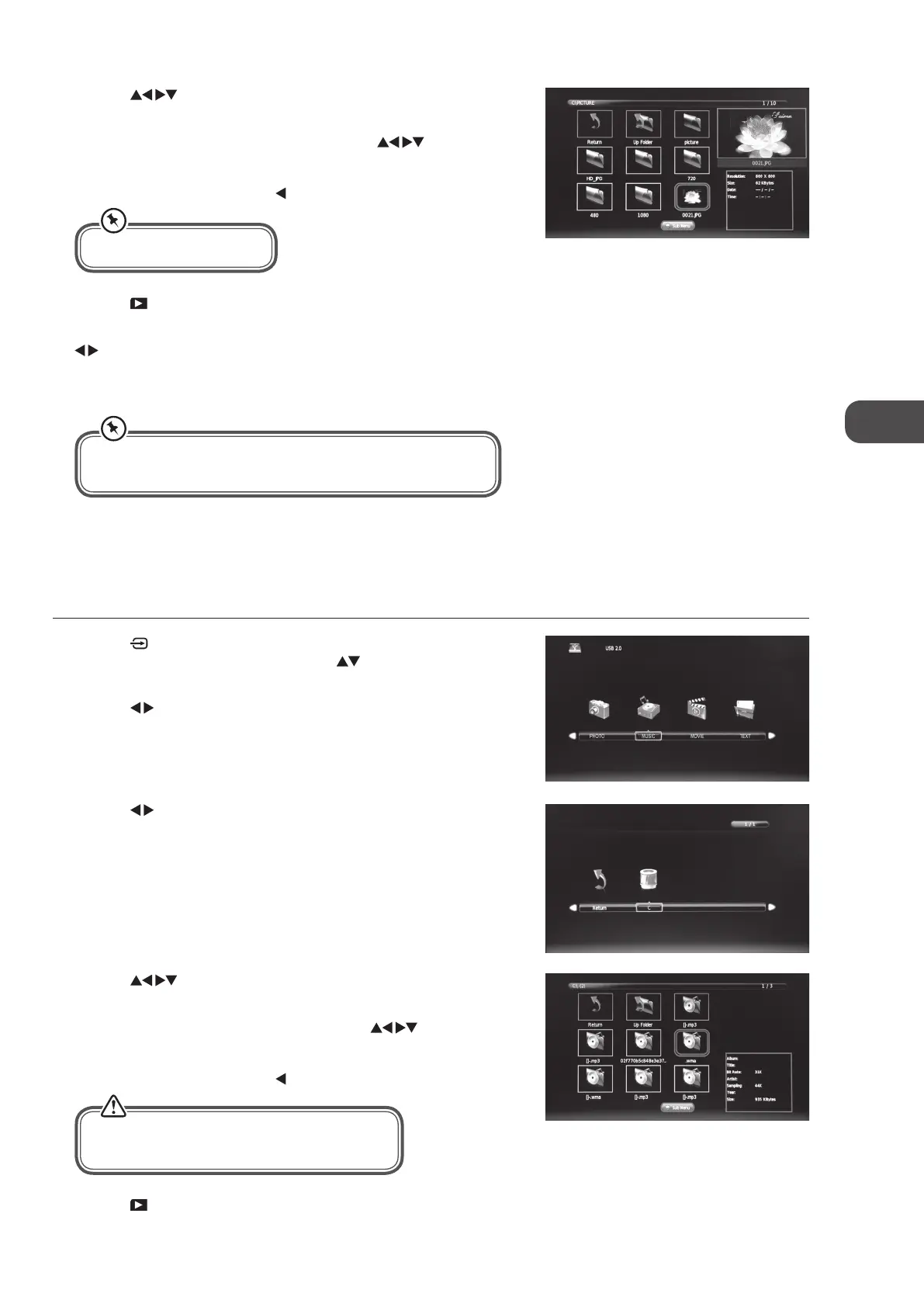 buttons to navigate in the music folder and then press