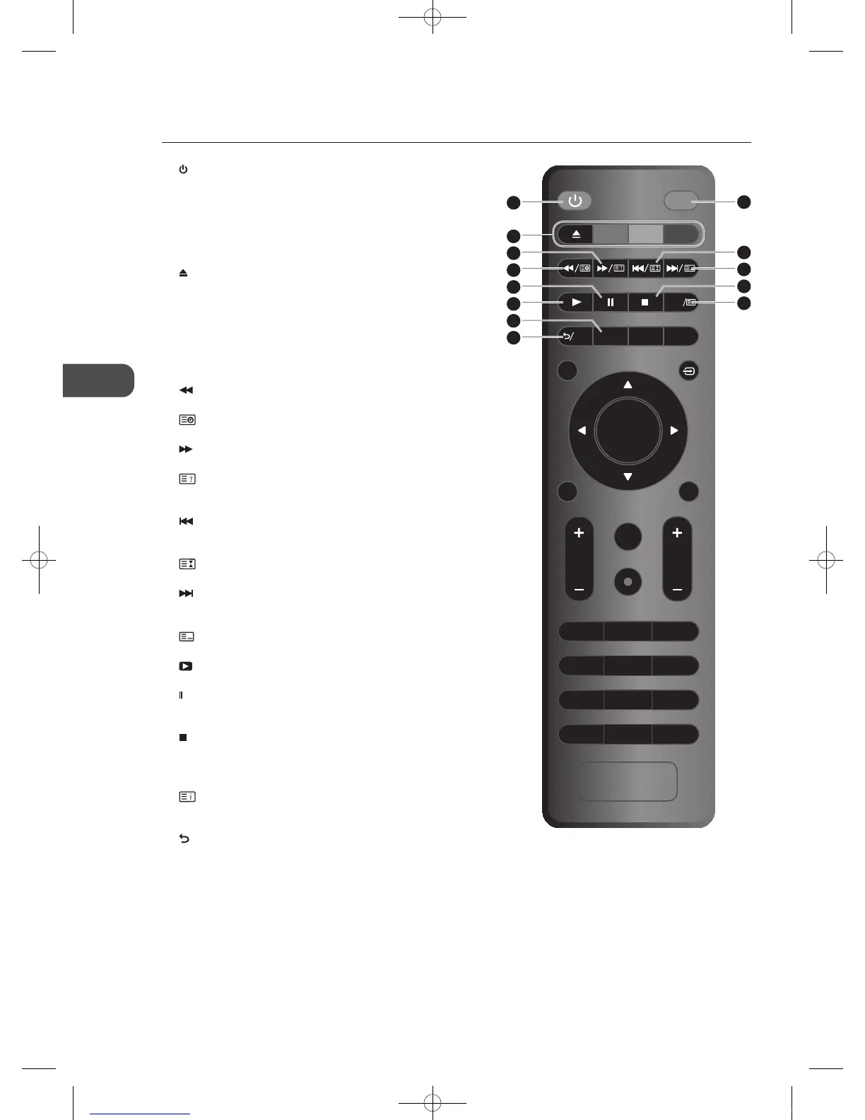 Switches the TV between on and standby mode.
