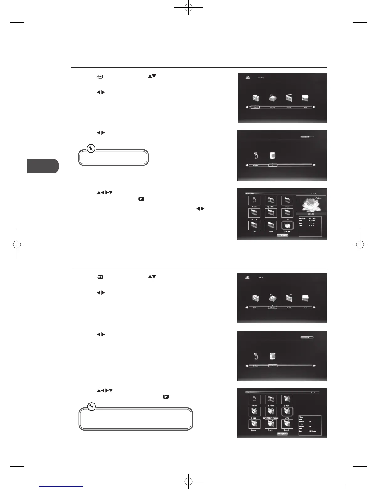4. Press the buttons to navigate in the music folder. Select the