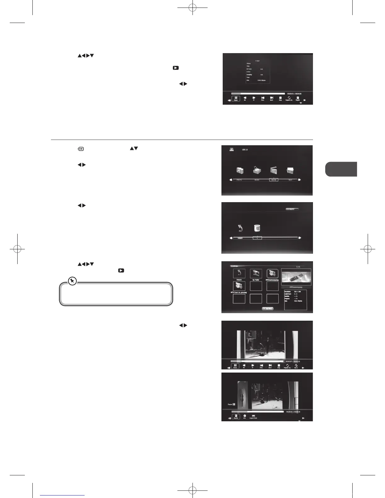 4. Press the buttons to navigate in the movie folder. Select the