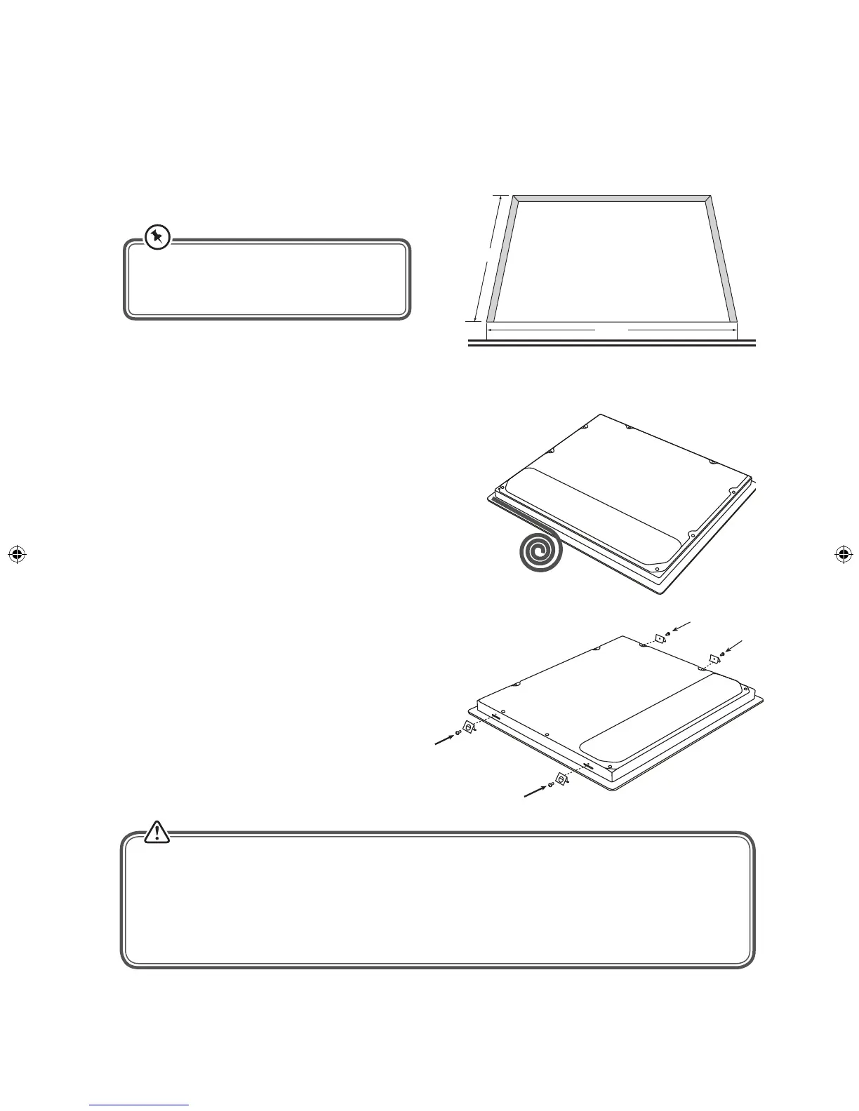 • Be sure the thickness of the work surface is at least 20mm. Use a heat-resistant work surface material to avoid