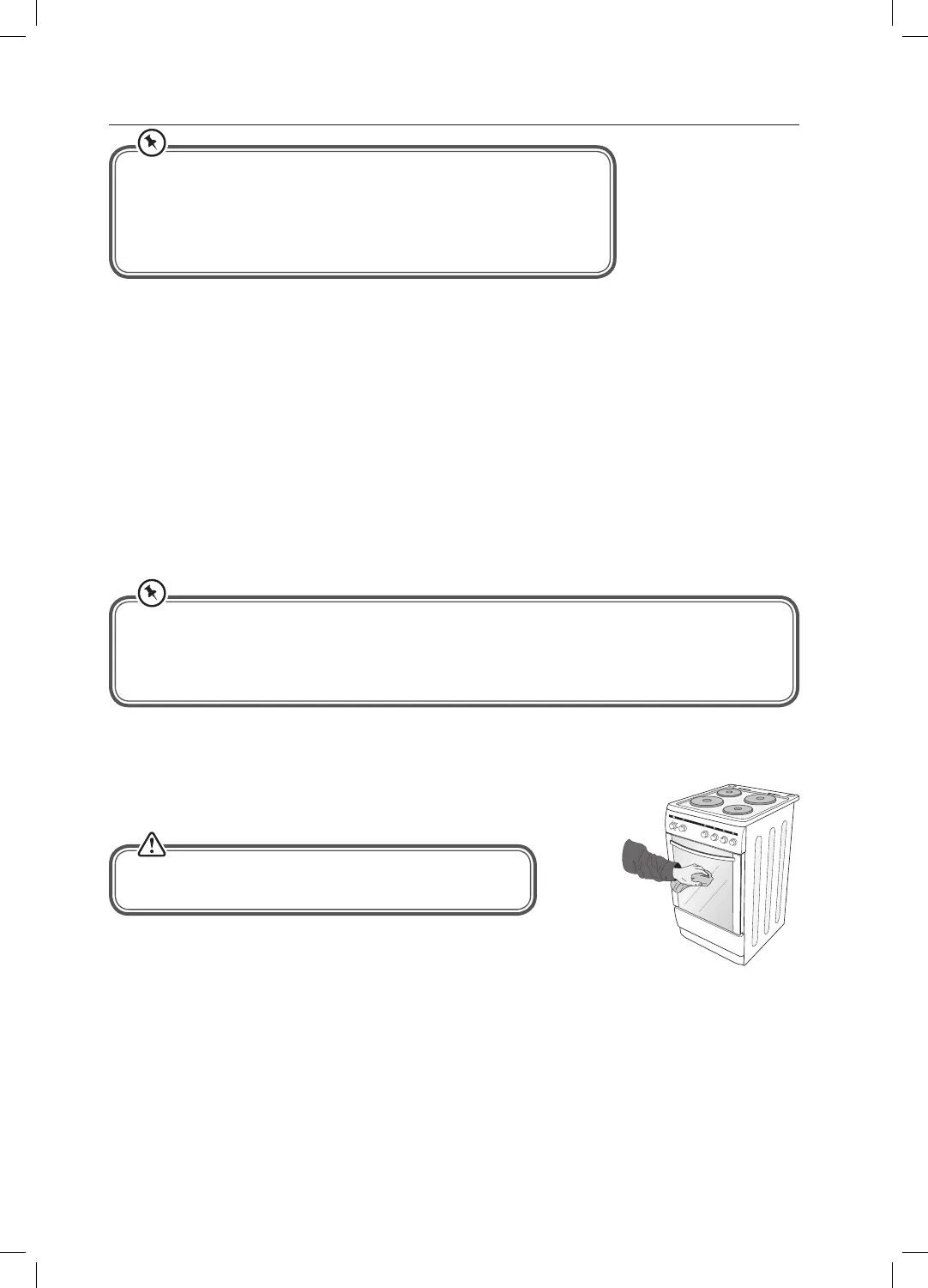 • Never use ammable agents like acid, thinner or petrol when cleaning your oven.