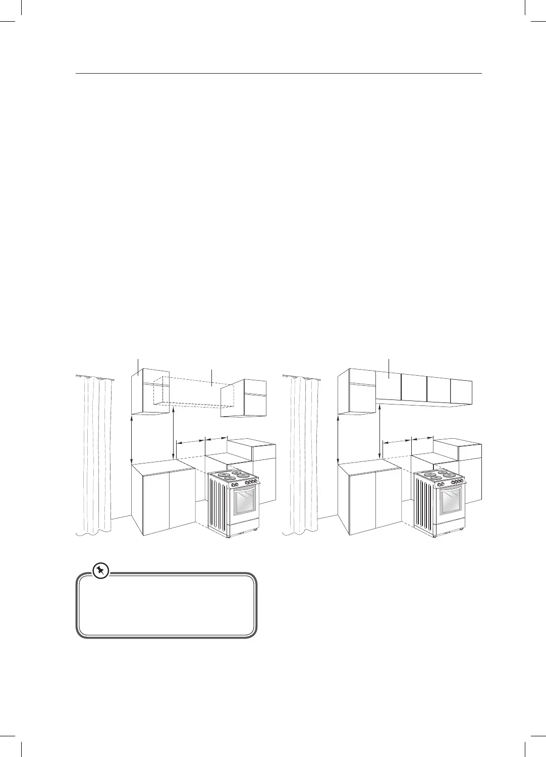 • Any cooker hoods must be installed according to the requirements of the cooker hood instruction/installation