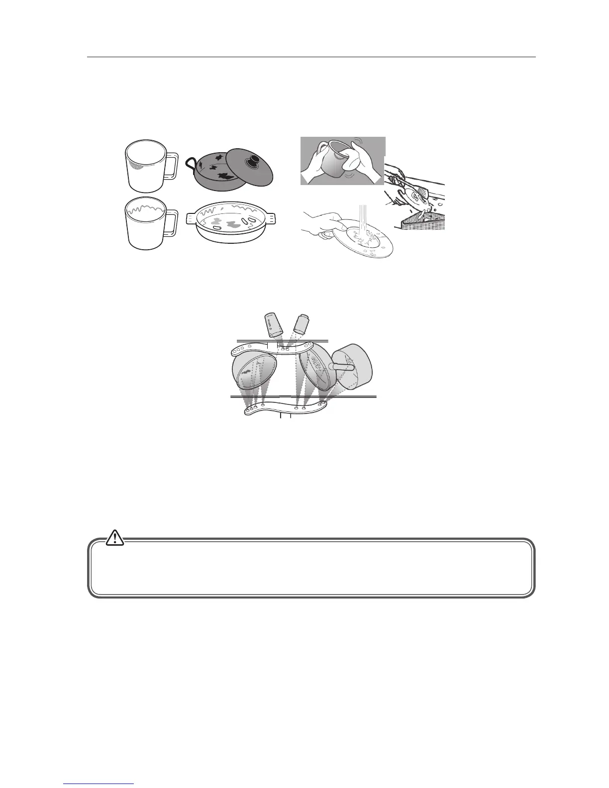 • Hollow items such as cups, glasses, pans, etc. must be placed upside down in the basket.