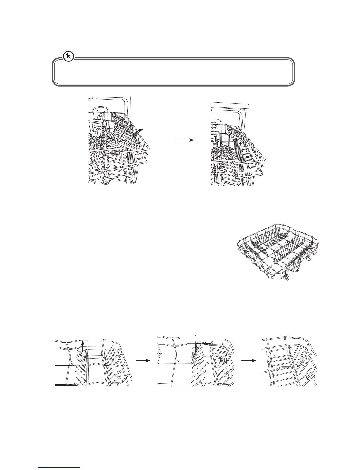 To make room for taller items in the upper basket, raise the cup rack upwards. You can then lean the tall