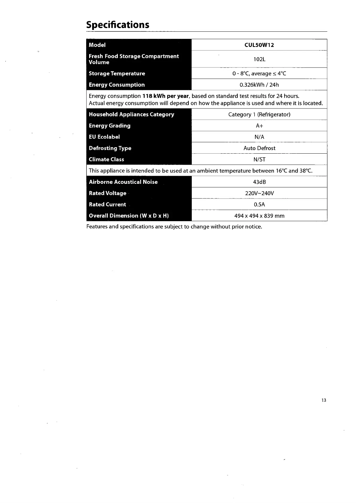 Currys Essentials CUL50W12 - Specifications