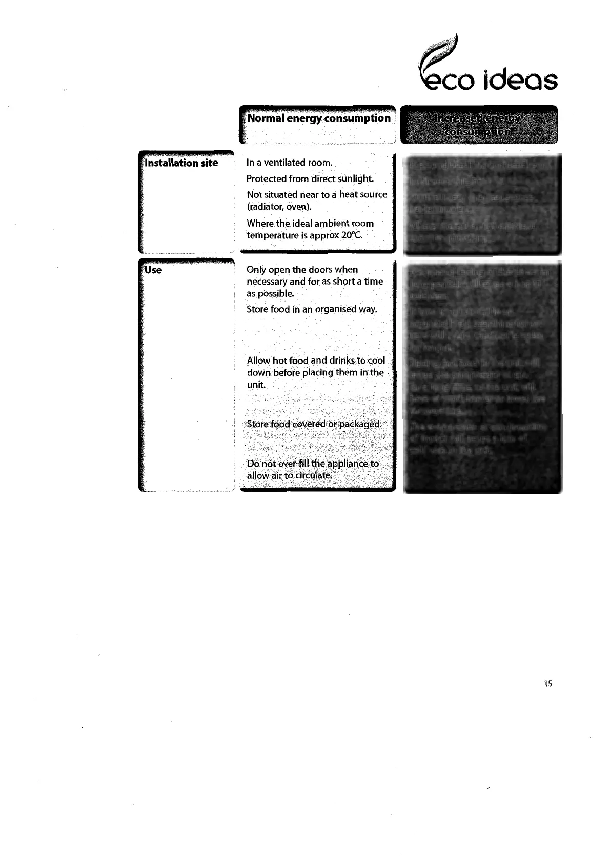 Currys Essentials CUL50W12 - Energy Saving Recommendations; Installation Site for Energy Efficiency; Usage for Energy Efficiency