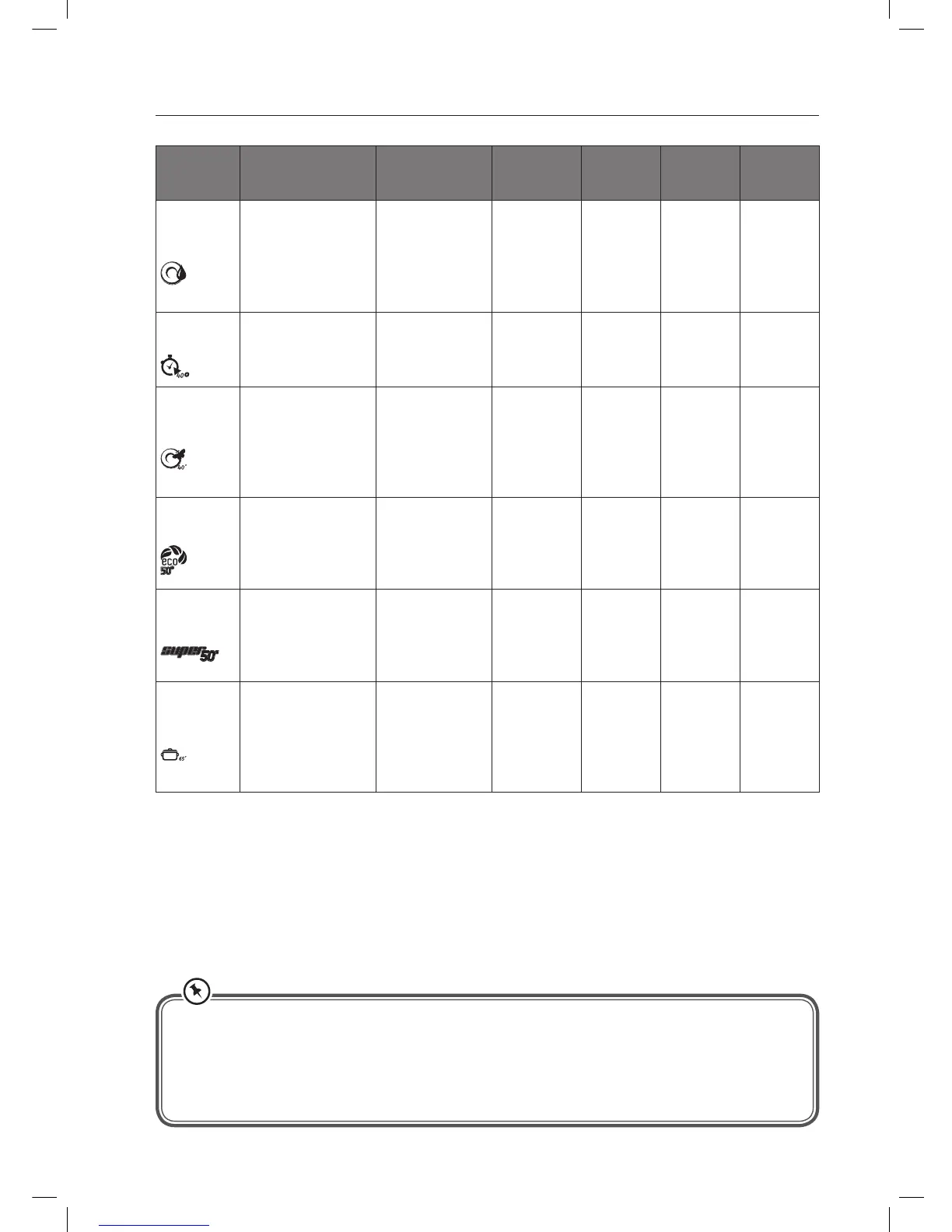 • Some wash programmes do not have a drying function, please refer to the Wash Cycle Table