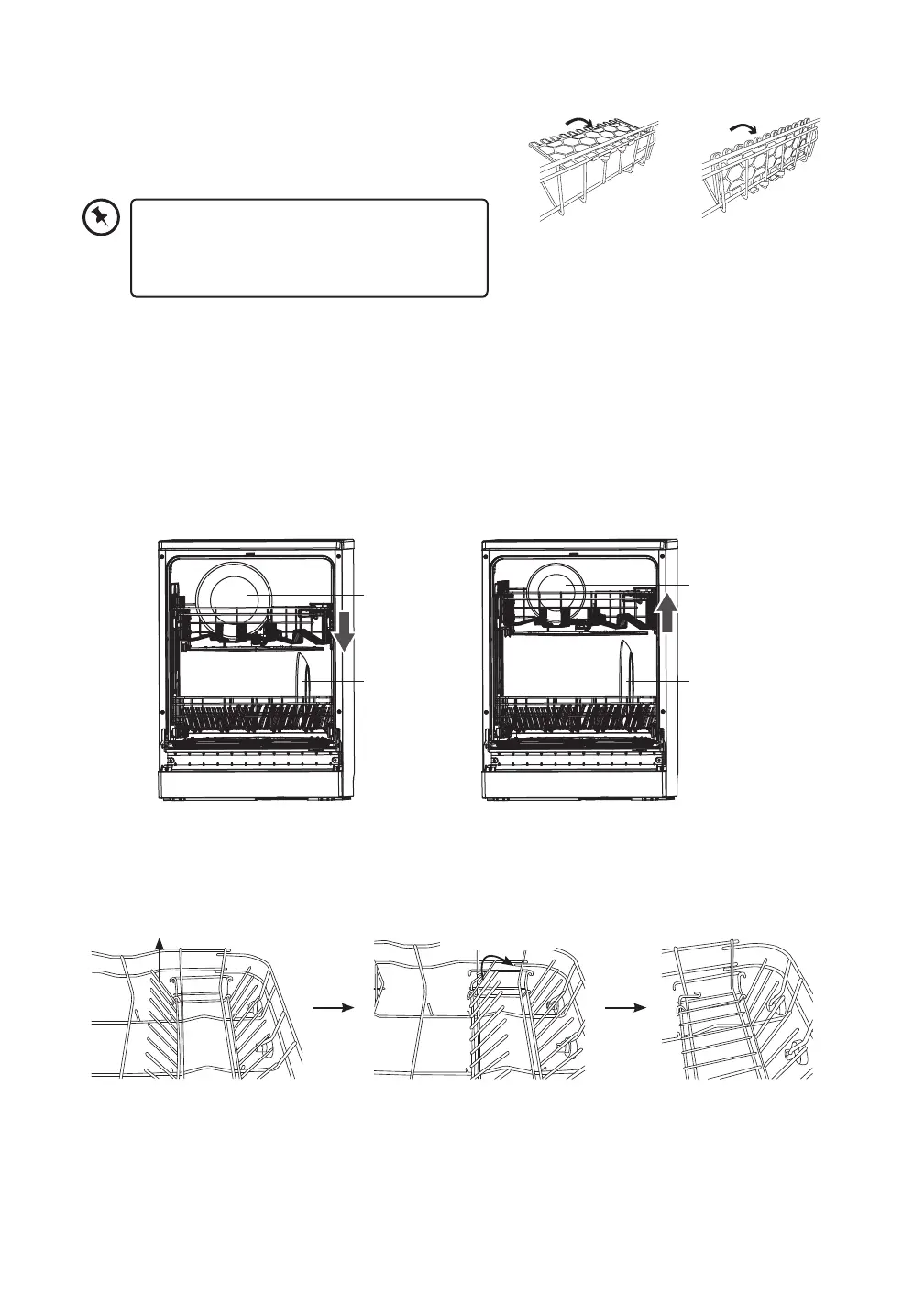 If required, the upper basket should be adjusted to create more space for large plates on the