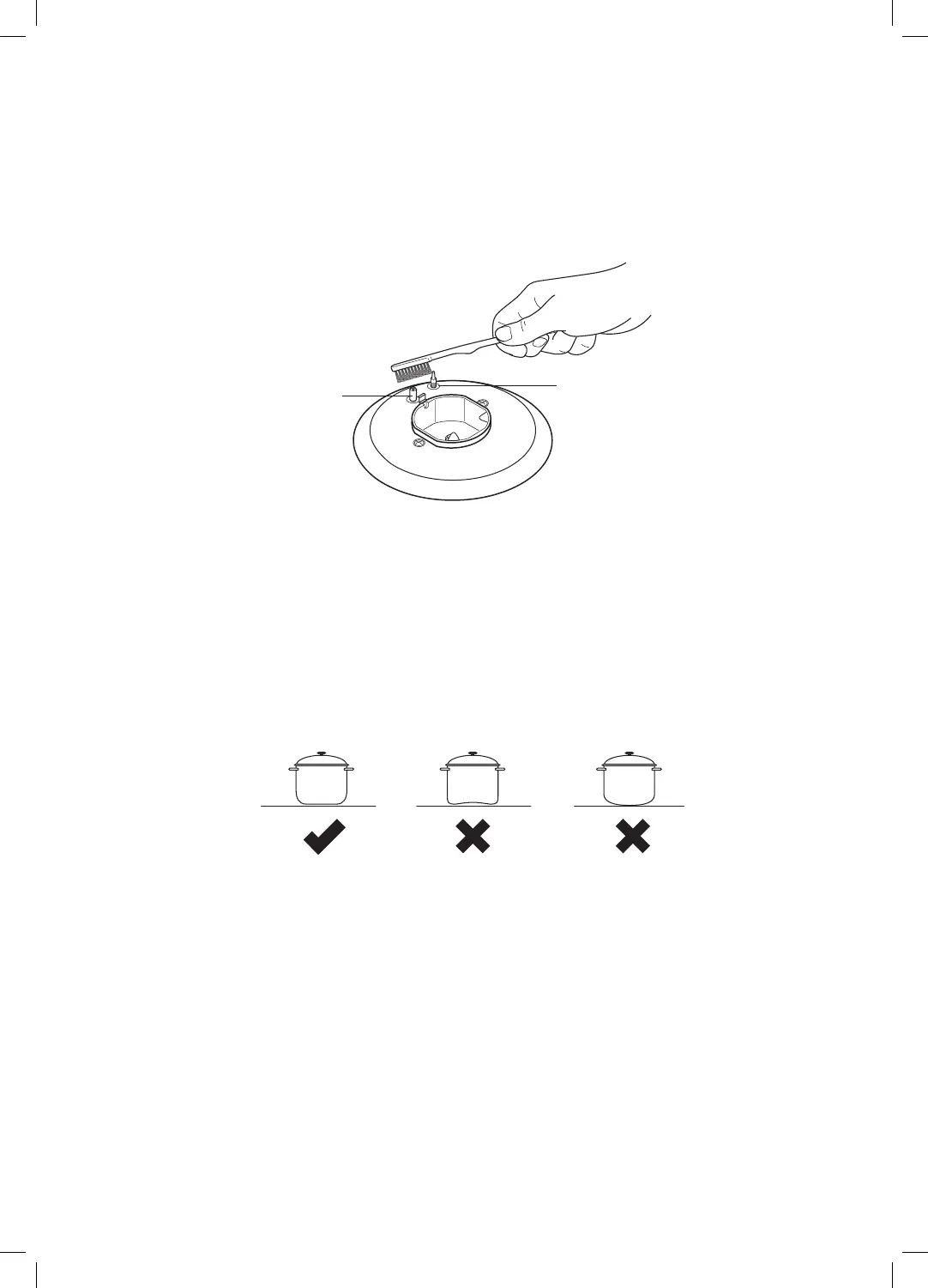 Always make sure saucepans are stable. Using very heavy saucepans may bend the trivet/pan support or deect
