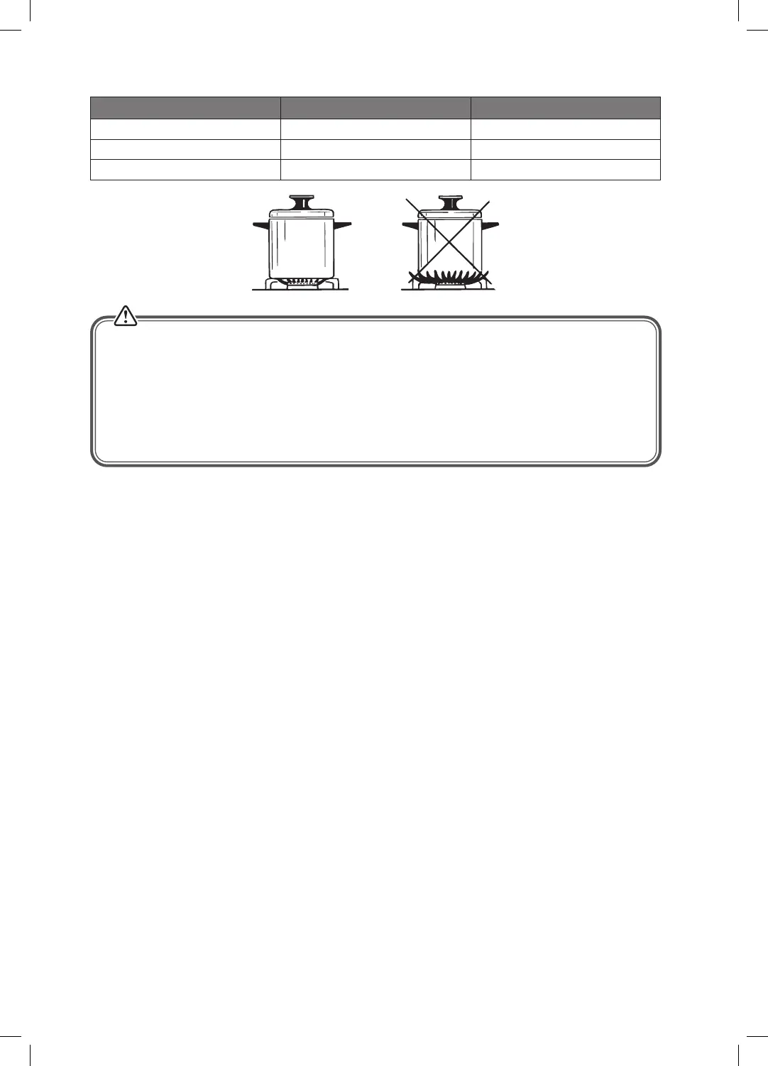 Do not use cooking vessels on the hob that overlap the edges of the hob.