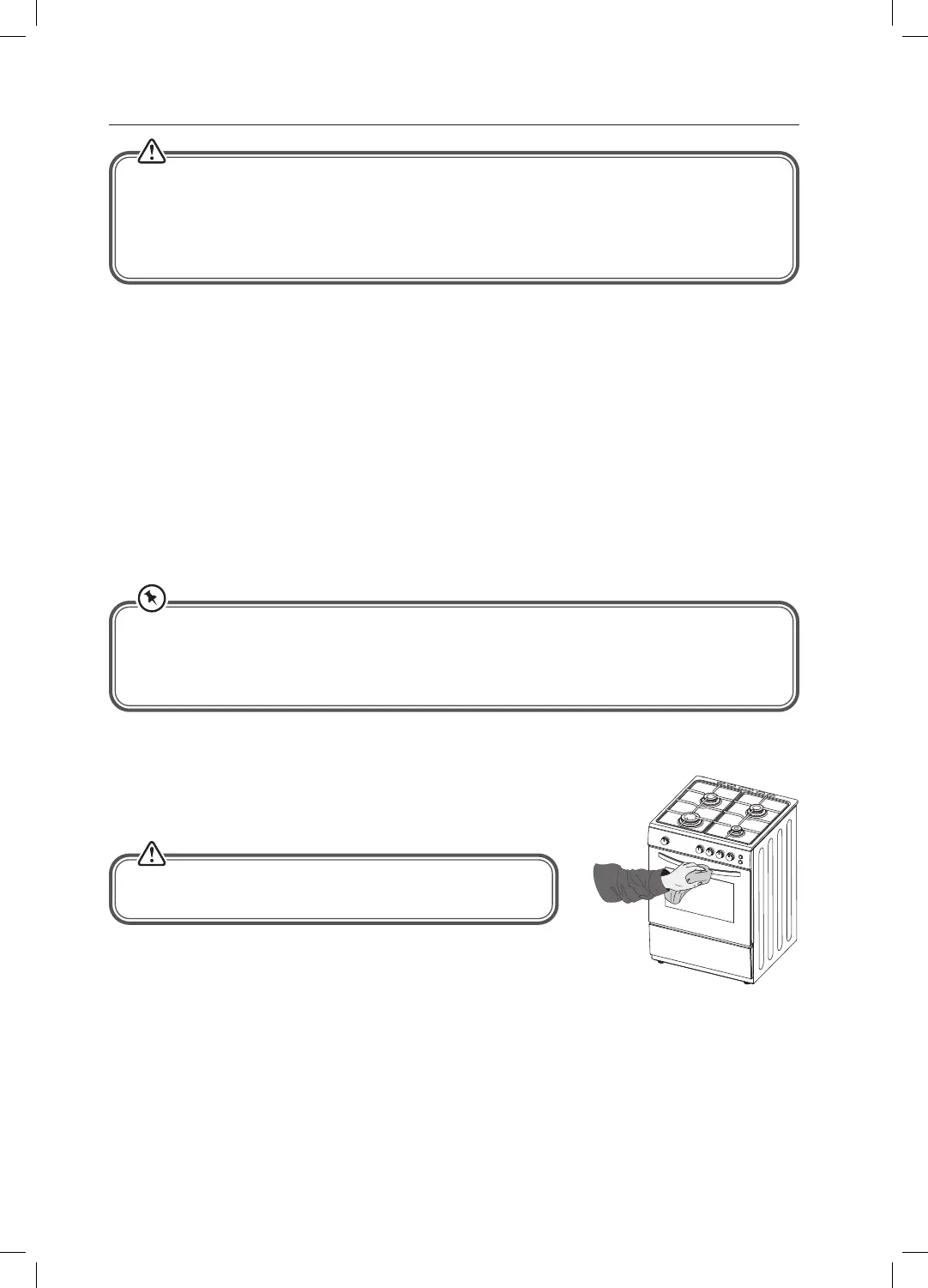 • Never use ammable agents like acid, thinner or petrol etc. when cleaning your oven.