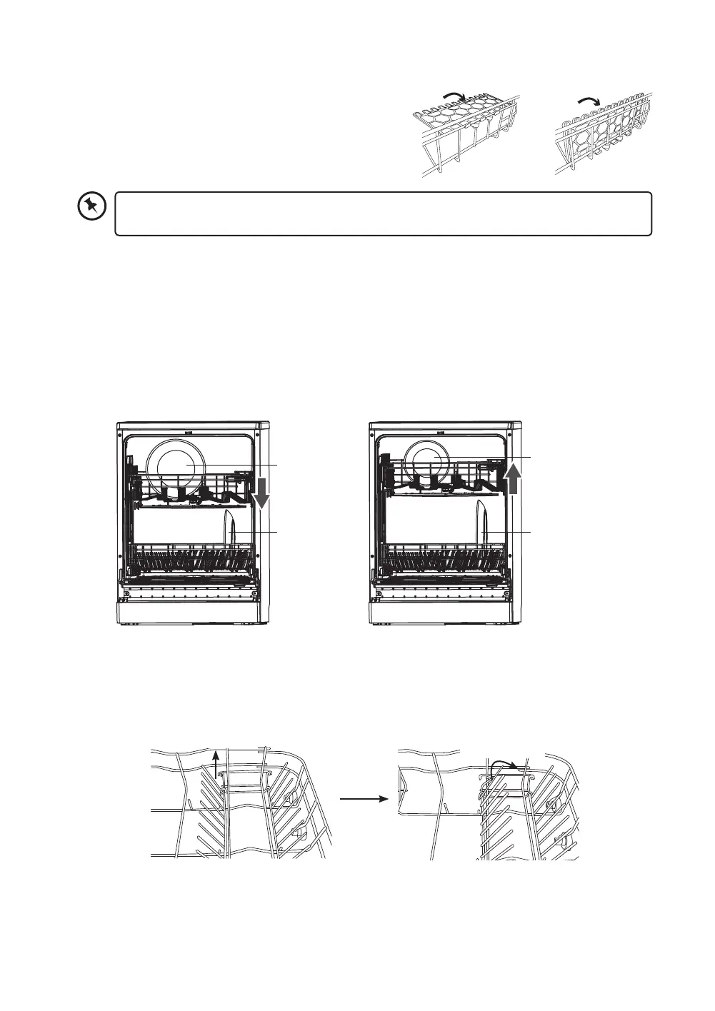 If required, the upper basket should be adjusted to create more space for large plates on the