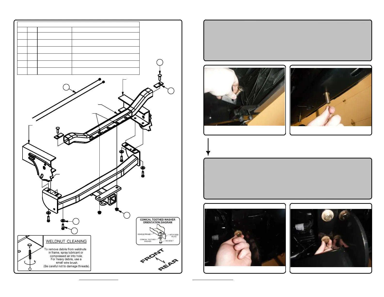 toothed washers into existing weldnuts, as shown.
