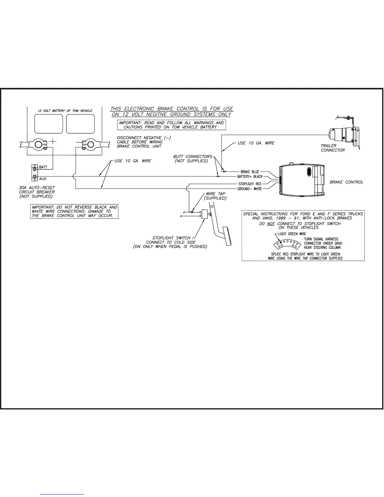Feed two 10 gauge wires, one white and black, from the mounted brake control
