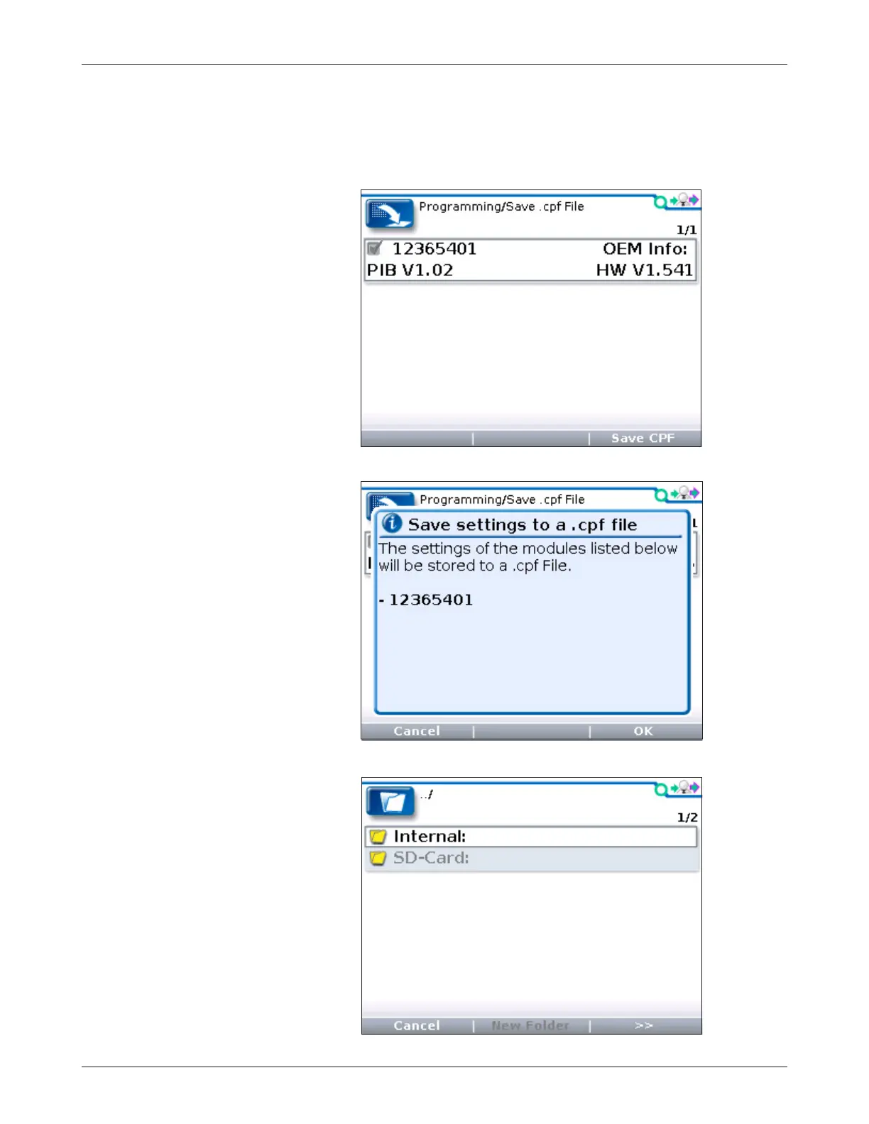 When you press the “Save CPF” softkey, this pop-up message appears:
