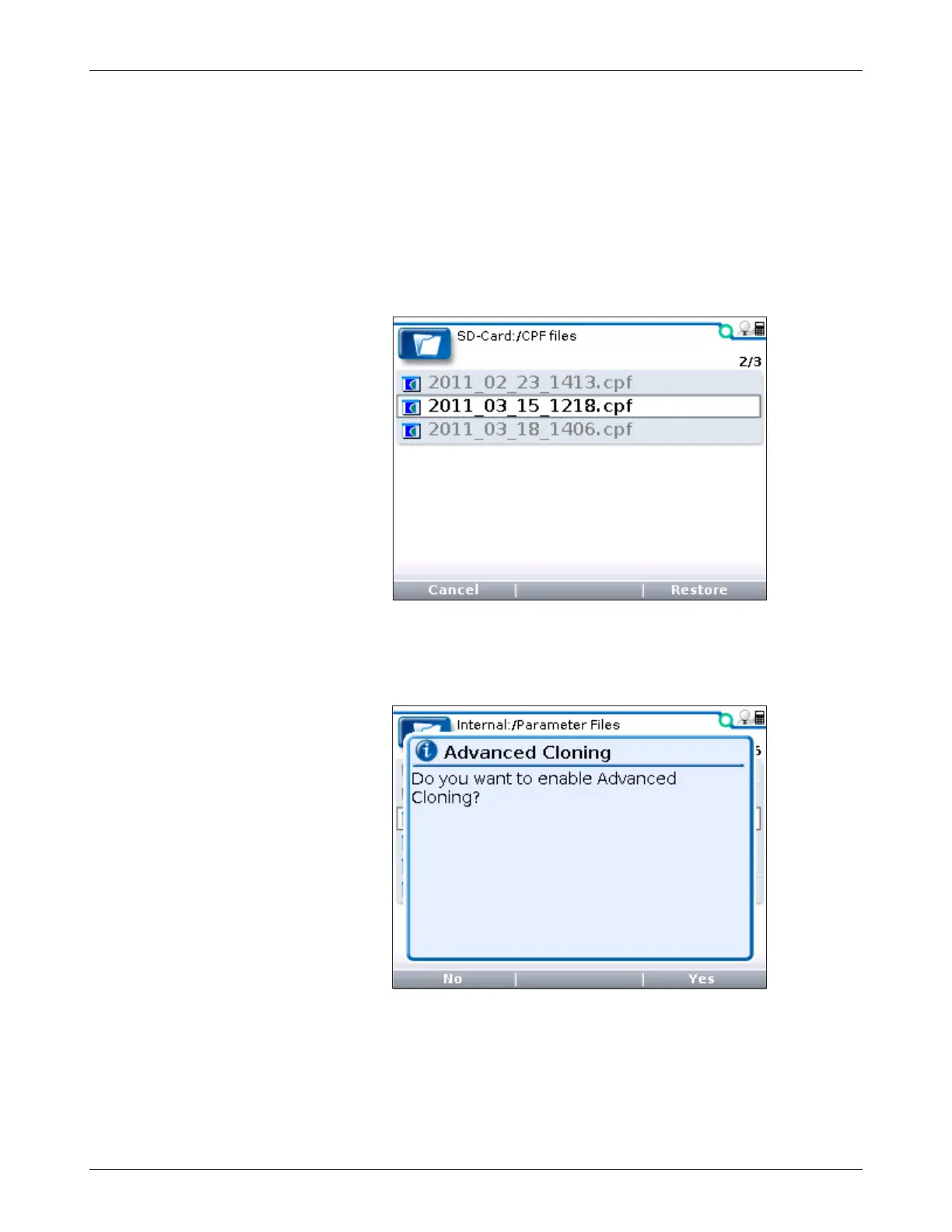 Advanced Cloning (“Yes”) restores all parameters, including those at a