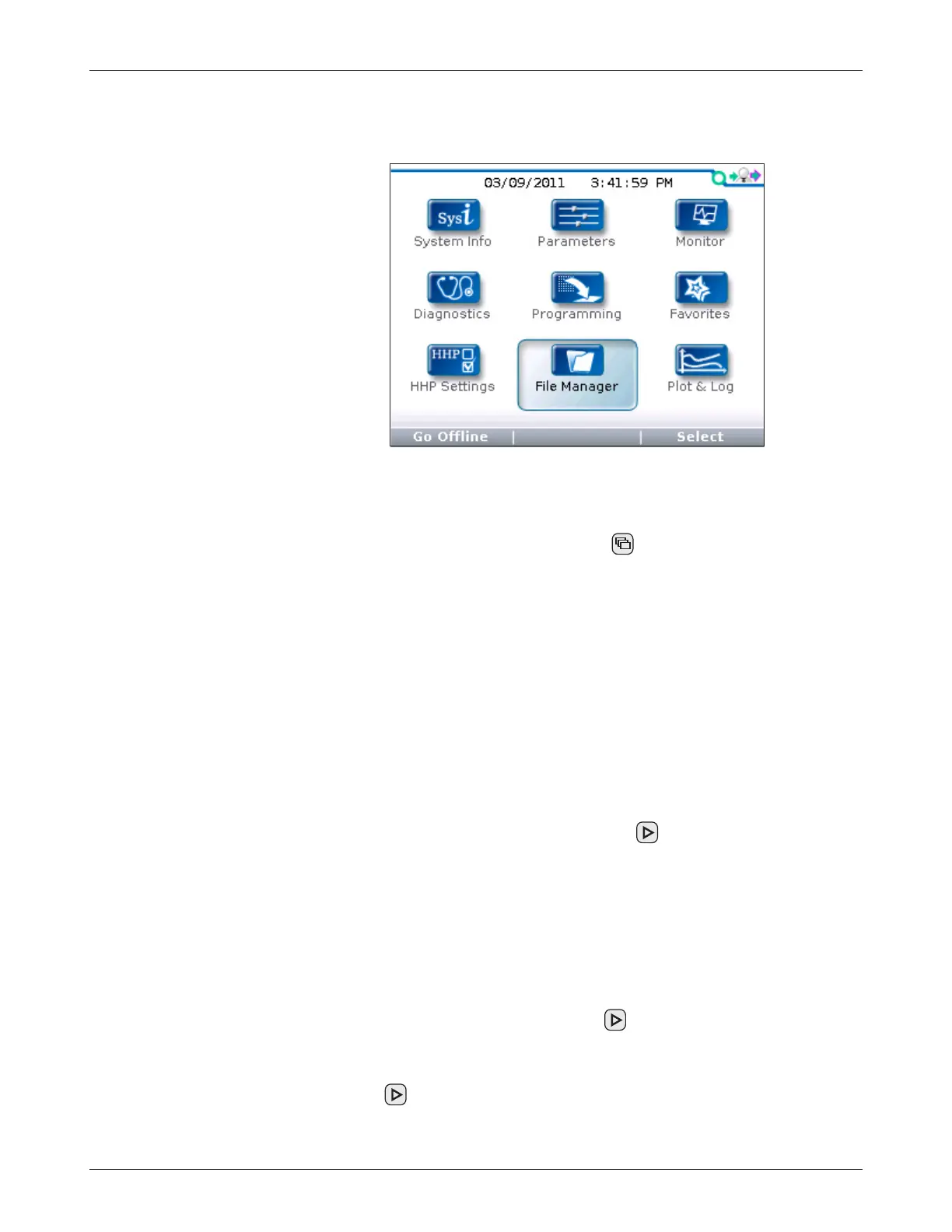In the Main Menu, highlight the File Manager icon and press the “Select”