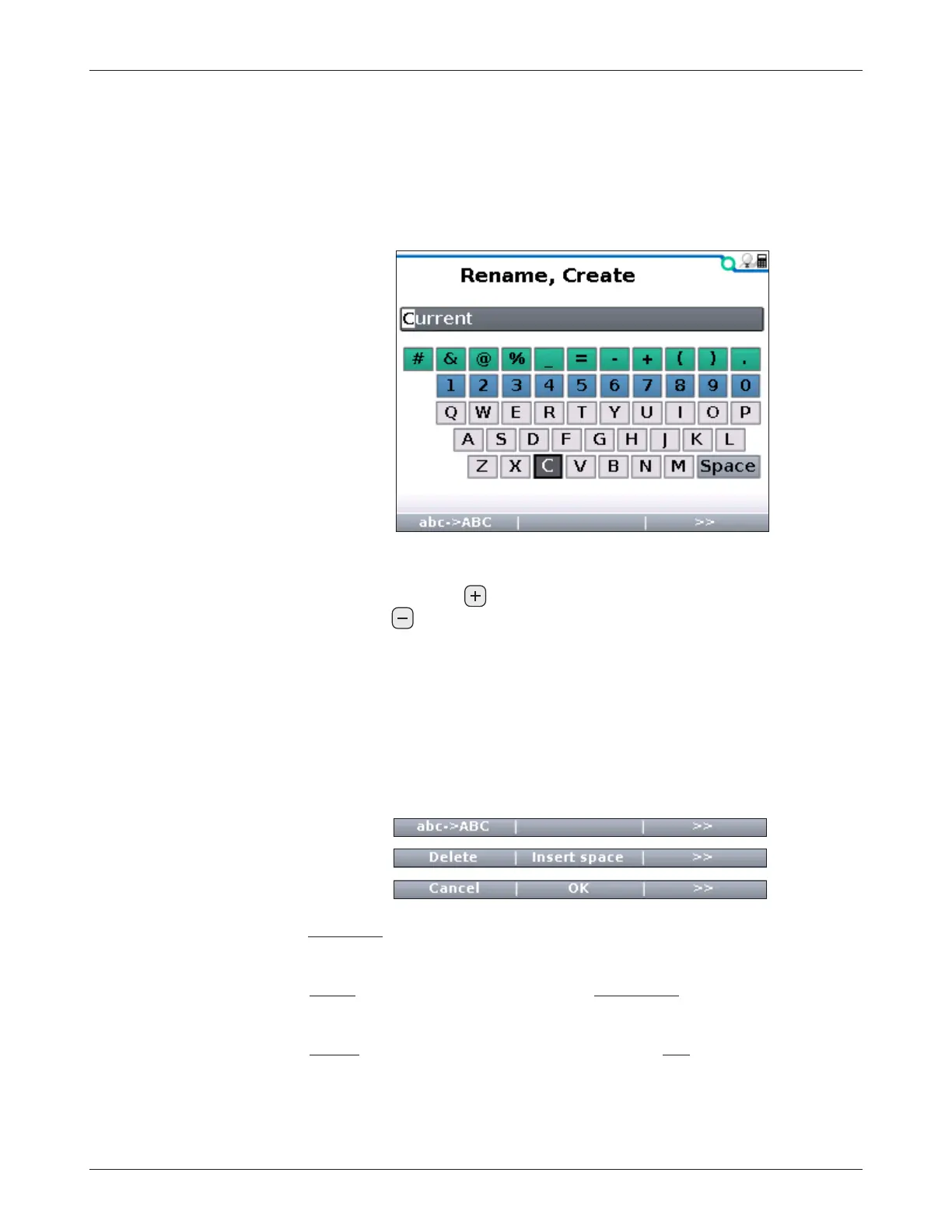 “Rename” or “New Folder” softkey, the keyboard screen appears: