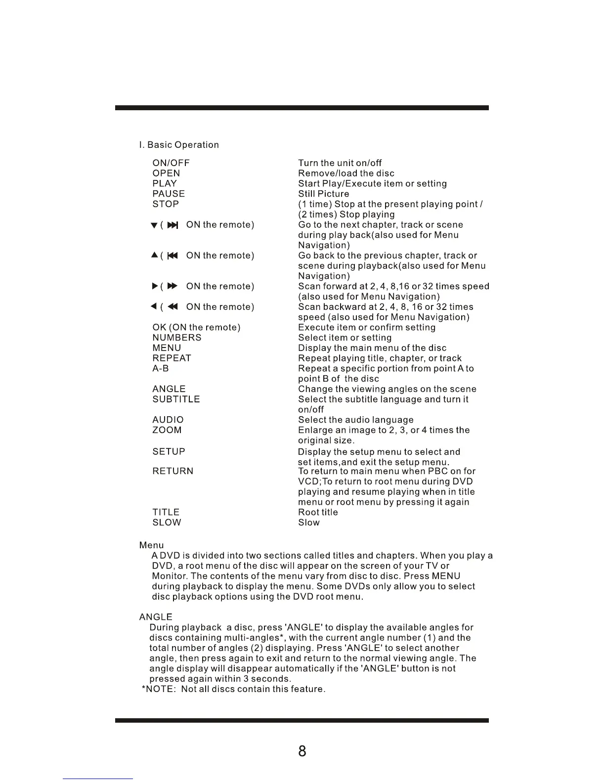 Curtis DVD 7014 - Basic Operation - Playback; Playback and Navigation Controls; Menu and Title Operations