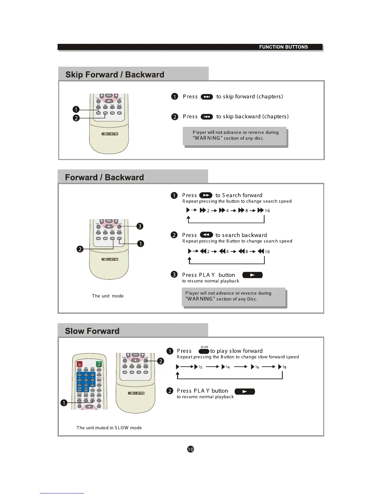Curtis DVD1041 - Skip Forward;Backward; Forward;Backward Search; Slow Forward Playback