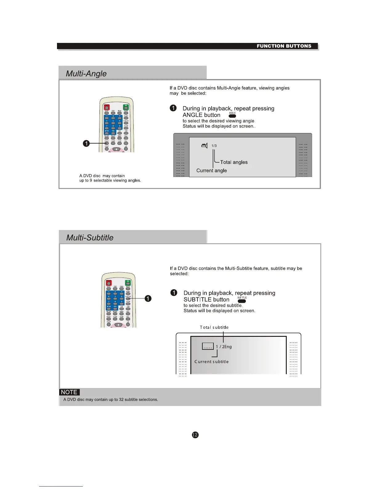 Curtis DVD1041 - Multi-Angle Selection; Multi-Subtitle Selection