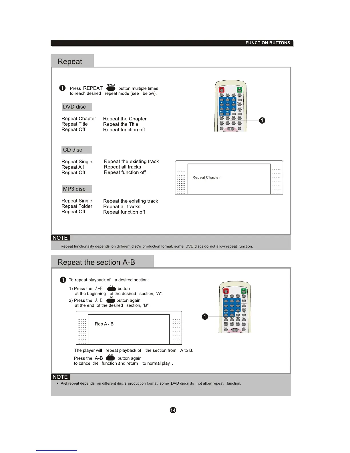 Curtis DVD1041 - Repeat Modes; Repeat Section A-B Notes