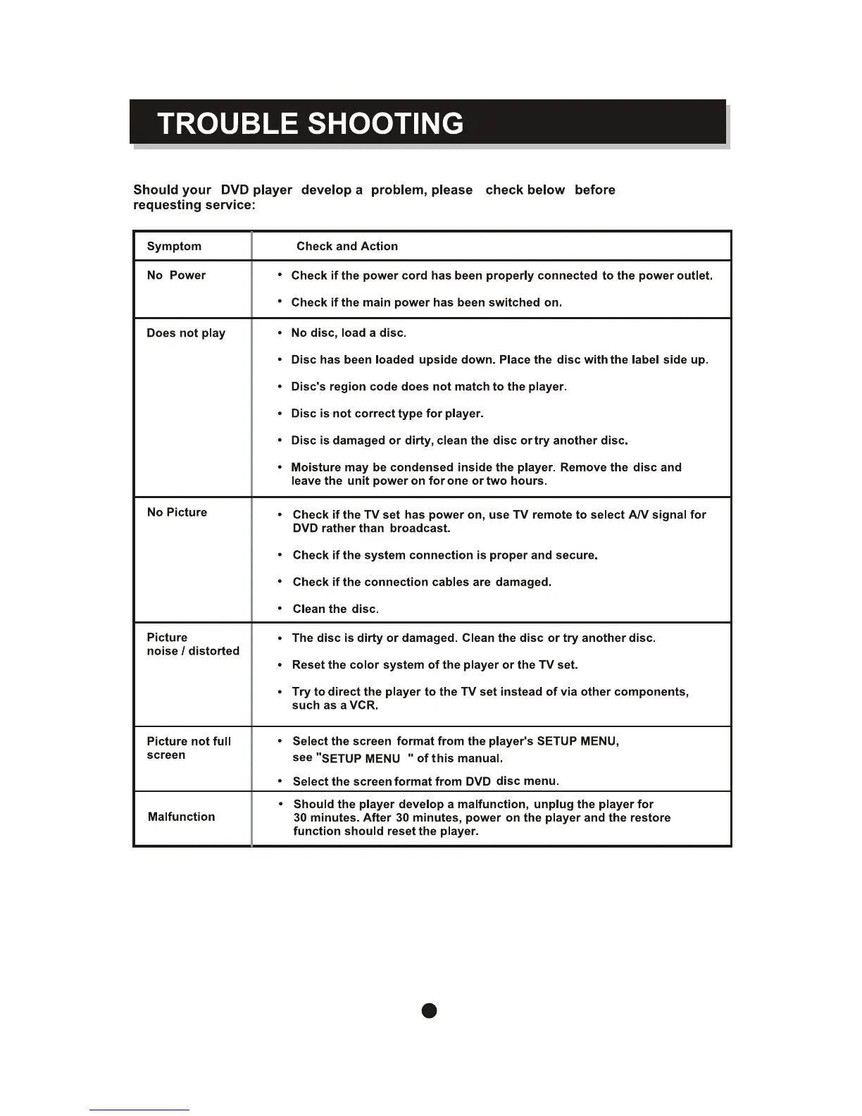 Curtis DVD1041 - No Power; Disc Playback Issues; Picture; Screen Issues